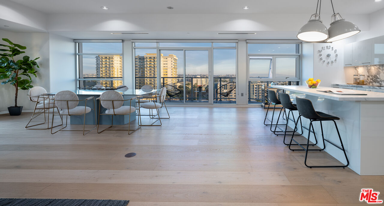 Striking Corner Penthouse with commanding Jetliner Views at Latitude 33! Stunning Architectural Boutique building by KAA Design Group, the height and scale here can never be replicated in this location and you're at the top with only three neighbors on this floor. 2,530 sf built to impress with high ceilings, recessed lighting, solid core doors, heavy hardware, filtered water, outdoor entertaining space & massive open-concept great room perimeter lined with walls of glass to take in the surroundings. Quality materials abound with a recent designer-done update featuring gorgeous Oak hardwood floors, a new kitchen with hi-end appliances, marble backsplash and large island, spa style baths, and more. Set up as a two bedroom (originally three and easily converted back), four baths + den. This design offers a luxurious primary suite with sitting area, two walk-in closets and two baths, great for couples. A spare bedroom's situated on the opposite end of the unit for privacy. The penthouse floor is the only level with balconies enhancing your connection to the views, California sun and Pacific Ocean breezes. Neighborhood? At your fingertips are an abundance of shops, restaurants, bars and walk / bike paths. The building's three block proximity to the sand exemplifies coastal living, have (or want) a boat? You're just minutes to the Marina - location, location, location! Secure controlled access building, 24 hour concierge, state-of-the-art gym, two side-by-side gated parking spaces and rare onsite guest parking round out this spectacular offering - get it before it goes.